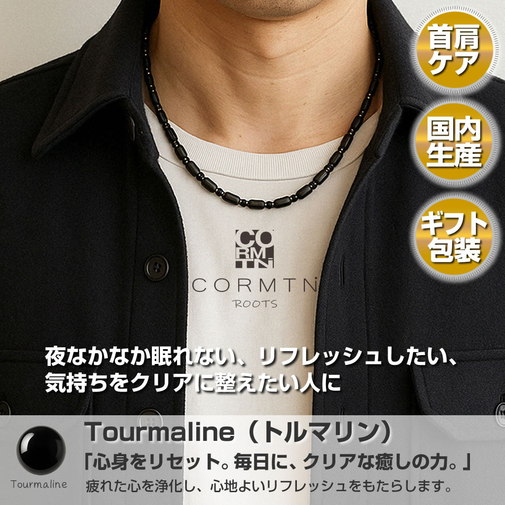 日本製 天然石 磁気ネックレス トルマリン 黒色 肩こり 首こり マグネット 男女兼用 ギフト対応 – CORMTN ROOTS【日本製・肩こりケア&お守りアクセサリー】
