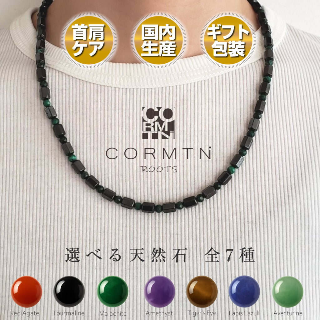 日本製 天然石 磁気ネックレス マラカイト 緑色 肩こり 首こり マグネット 男女兼用 ギフト対応 – CORMTN ROOTS【日本製・肩こりケア&お守りアクセサリー】
