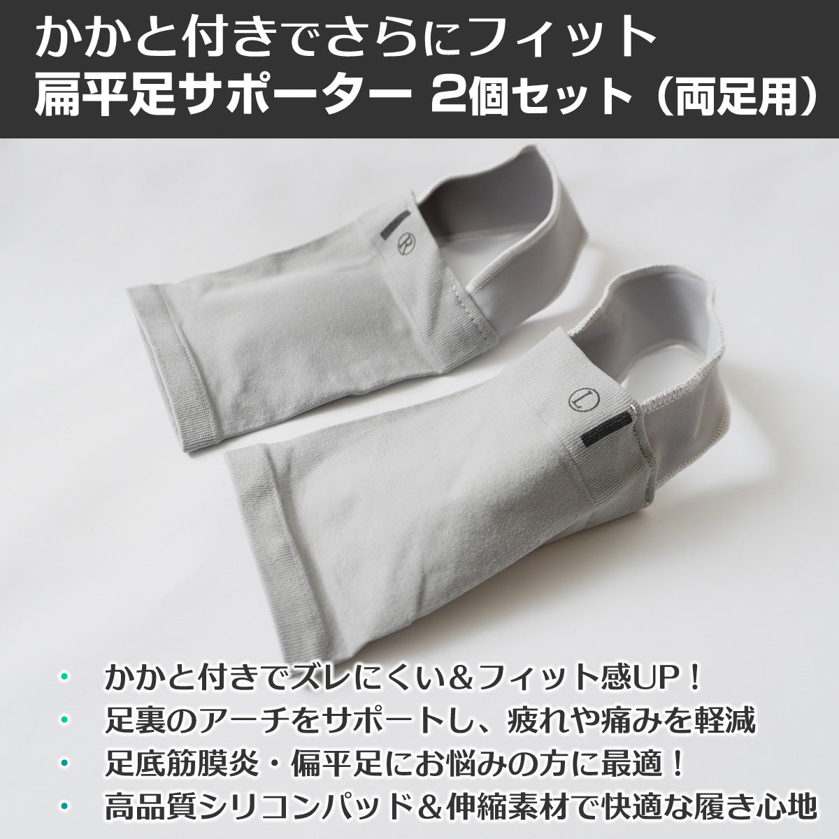 【新登場!かかと付きでさらにフィット】 扁平足サポーター 2個セット(両足用)