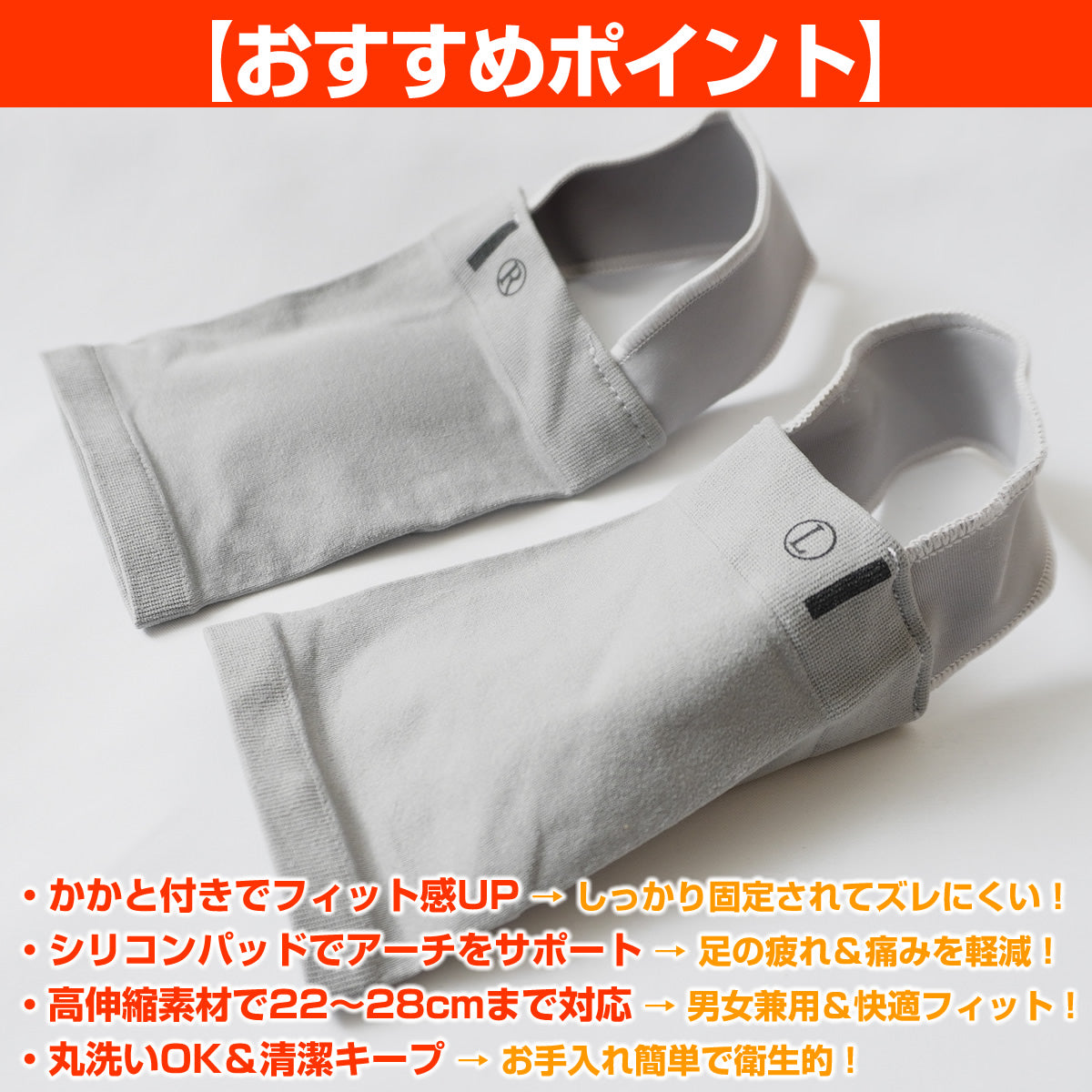👣 シリコンパッドでアーチをサポート → 足の疲れ&痛みを軽減!